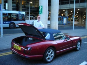 Phil seen here taking delivery of his new Chimaera 4000 at Gatwick Airport after flying in from Amsterdam