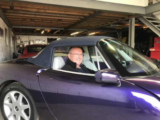 Brian a serial TVR owner seen on the launch pad ready for the trip up to Leeds in his new TVR after part exchanging a lovely 1993 V8S in Cureton Green