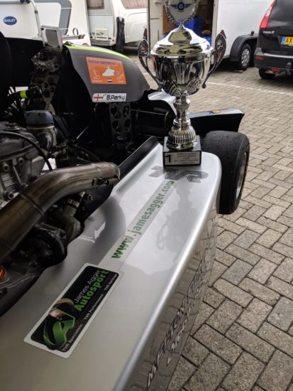 Ben Parkinson in his rather terrific looking Kart we sponsor managed, despite an engine swap and rain on and off over the weekend secure a first overall in his 4 stroke powered go kart, with some impressive lap results that put to shame some of the more powerful division karts at weekend.