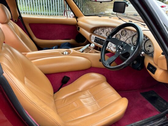 Incoming next week – FOR SALE @ £15750 TVR Chimaera 4000cc, MK2, Cherry pearl, Butterscotch Full Hide, Cherry Red Wool carpets, Grenadine Mohair Roof, Power Steering, Air conditioning, heated seats, Imola Alloys, Latest Rear Lights, Angled Rear Number Plates, Upgraded Ally Dashboard, Leven Cockpit Kit, Kick plates, Upgraded Audio, Upgraded Gold Badges, 31486 miles