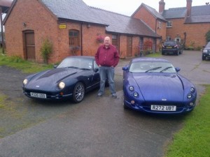 After snapping up two of our TVR`s in the past two months, Bill (seen inbetween his two TVR`s) slipped a disc last week and was told not to strain his back for the next 6 months where possible.