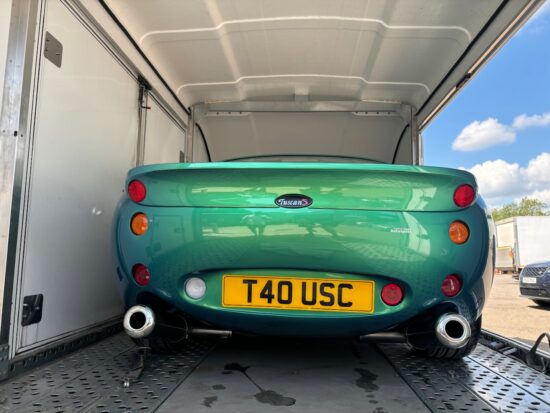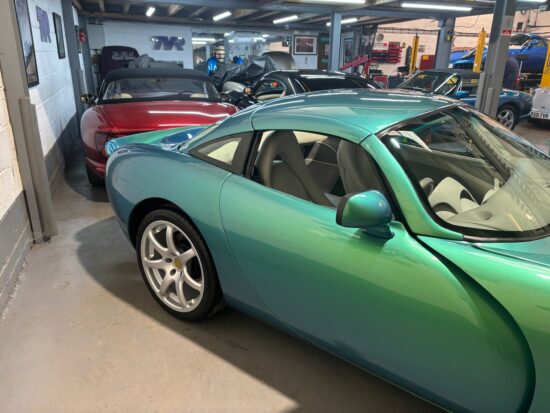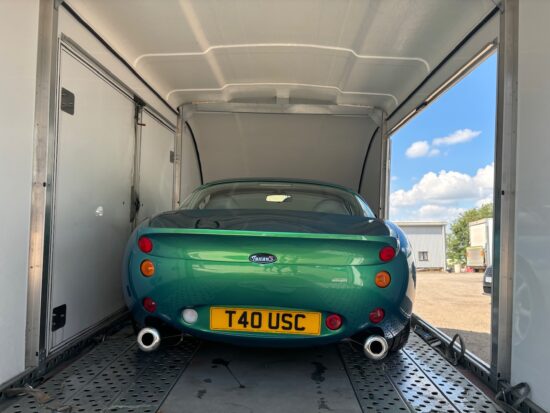 TVR Cerbera Speed Six now sold and off up to a TVR Petrol head Andrew, seen spotting his green sunglasses in a lovely S Series that’s coming into stock next week