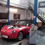 The local monthly classic car meeting at Ashby Folville, Leicestershire was held tonight and we took down our Lightweight Red Rose Cerbera 4500cc to show what a great engine looked like.