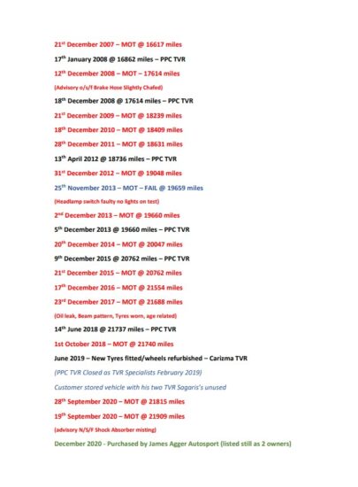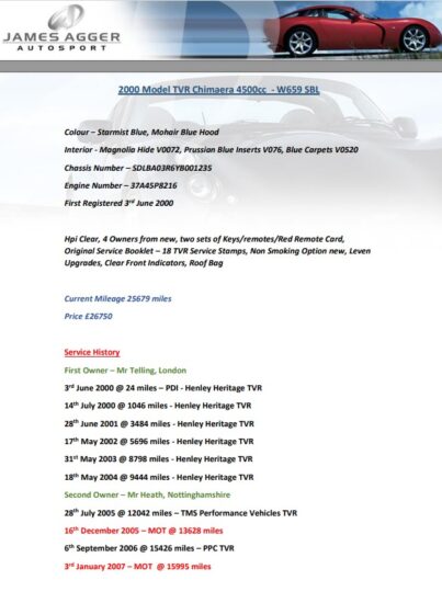 - Comments Off on Service history for W659 SBL – TVR Chimaera 4500cc