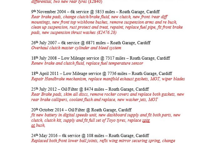 29th May 1998 – 6k service @ 78841 miles – Newtown Motors TVR
