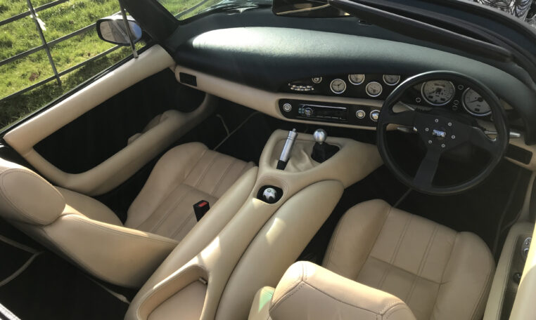 Sold1998 R Reg TVR Chimaera 5000cc, Birkdale Green Metallic, Magnolia/Black Hide, Black Carpets, Power Steering, TVR Logo In Headrests, Carbon Effect Dash, ACT Inlet Trumpets, Imola Factory Alloys, Upgraded Alloy Radiator, Silicon Hoses, Waxoyled Chassis, 2011 both outriggers replaced by Fernhurst TVR, Clear indicator Upgrade, Alpine Audio Upgrade, Rear Speakers, Aluminium Cockpit Kit, No Ashtrays, Kick plates, Detailed Engine Bay, Just Serviced, 12 Months MOT,