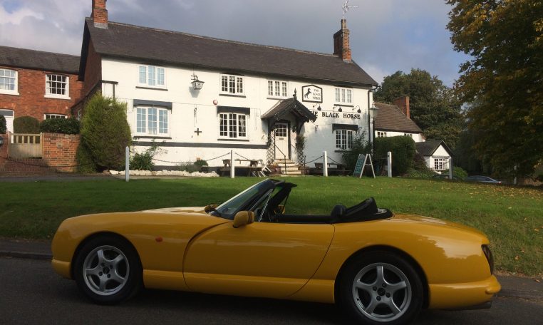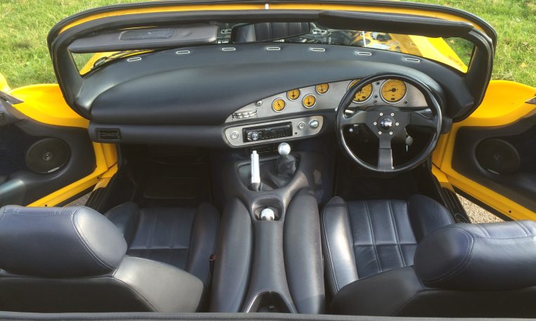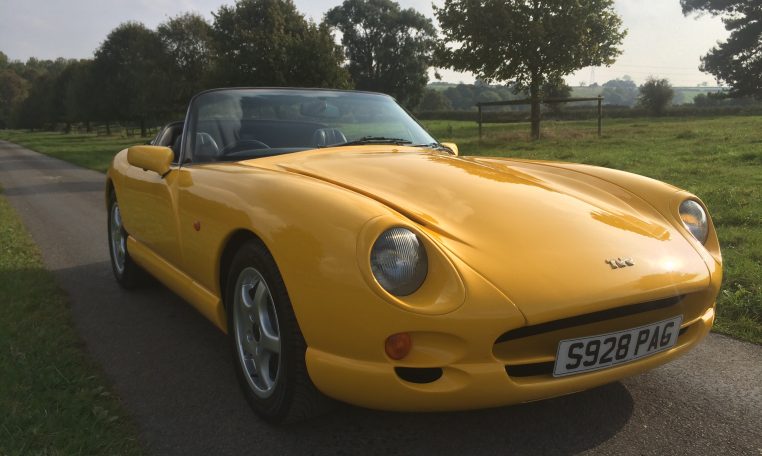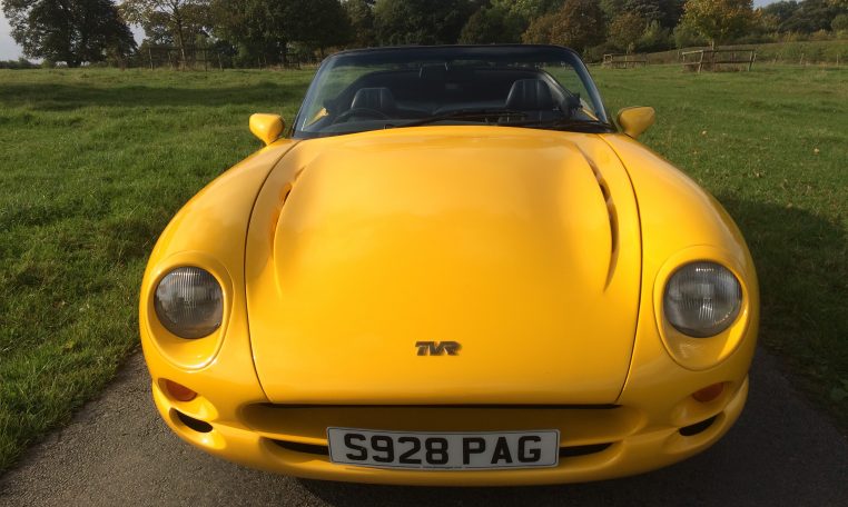 1998 S Reg, TVR Chimaera 4000cc, Camel Yellow, Black Hide, Black Carpets, Power Steering, Alloy Dash, Yellow Factory Dials, Alloy Cockpit Kit, Angled Rear Number Plate, Imola Factory Alloys, Sports Exhaust System, Upgraded Outriggers, Mohair Roof, Fully Serviced, Black Rocker Covers, Detailed Engine Bay, 12 Months MOT, Waxoyled, 51000 miles – Sold Previously and featured in Modern Classics Magazine later this year.
