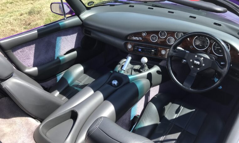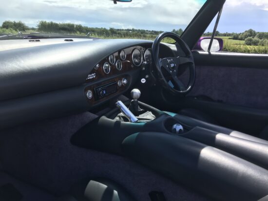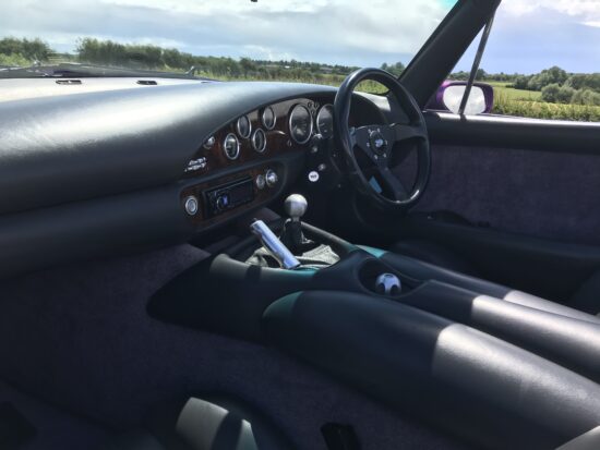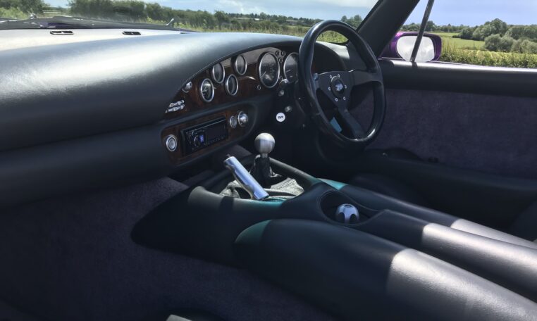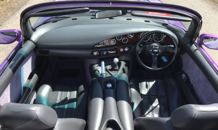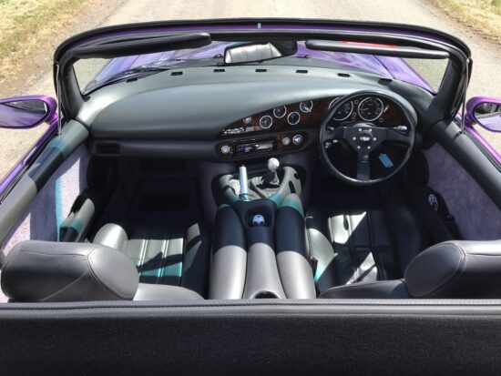 1998 S Reg, TVR Chimaera 4500cc – Purple Paradise, Full Anthracite Hide, Power Steering, Estoril Upgraded 500 Factory Alloys, 1998 Model Year, Angled Rear Number Plate, Latest Rear Lights, Black Mohair Roof, Purple Carpets, Kick Plates, Black Dials, Wooden Dash, Upgraded Audio System and Speakers, Rear Speakers, Alloy Cockpit Kit, No Ashtray Option, Hydraulic Upgraded Bonnet Opening, Union Jack Bonnet Badge, Waxoyled Chassis, Latest Alarm Remotes x 2, Full TVR Service History, Just Serviced, 12 Months MOT, 50145 miles