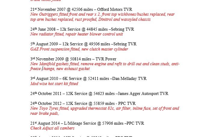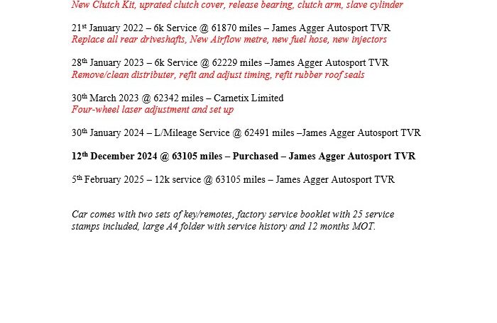 12th December 2024 @ 63105 miles – Purchased – James Agger Autosport TVR