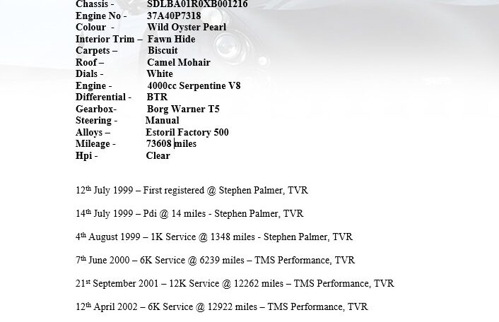 1999 T Reg TVR Oyster Pearl, Fawn, Power Steering
