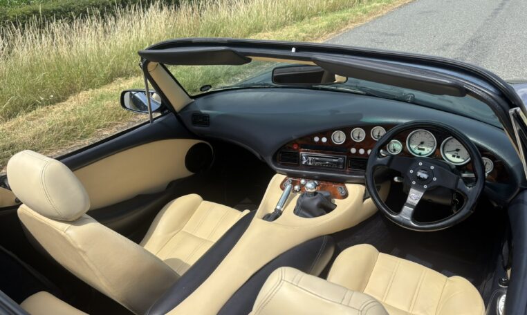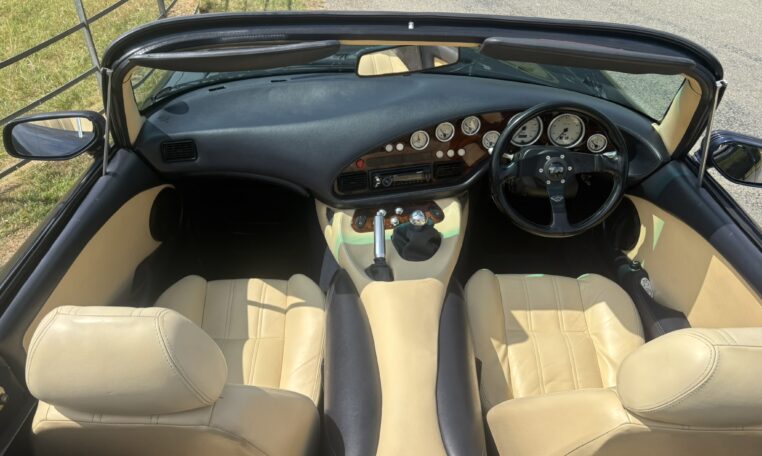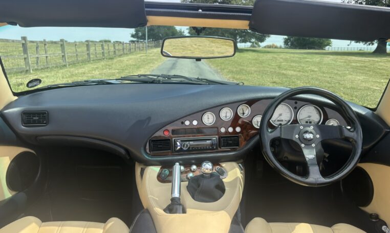 Magnolia/Prussian Hide, latest dials, latest fuel tank, Power Steering, Upgraded rear lights and front indicators, Estoril Alloys, Upgrade rear Badge, Silicon hose Kit, Red Rocker Covers, New Mohair roof @ 44k, New Camshaft and clutch @ 55k, Nitron Full adjustable Suspension @ 60k, Full outrigger replacement @ 64K, Just serviced , 12 months MOT
