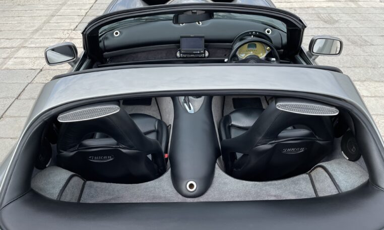 2002 02 Reg TVR Tuscan 4000cc, Ice Titanium Metallic, Black Hide, Air Conditioning, 18 Inch Shadow Chrome Alloys, Silicon Hose Kit, Sat Nav Fitted, Nitron Adjustable Suspension, Full History, Fully Serviced, 14950 miles from new, time warp, 1 Private Owner From New – Reg Not included