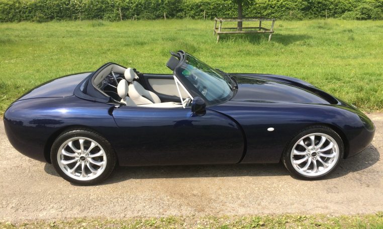 Limited Edition 5000cc, TVR Griffith, Le mans Blue, Portland Hide with Prussian Blue Inserts, Dark Blue Carpets with Portland Piping, Power Steering, No 72/100, Angled Rear Number Plate 2002 Model Year, Factory Alloy Dashboard, White Dials, Leather Door Inserts, Blue Mohair Roof, Upgraded Alloys, ACT Silicon Hose Kit, Stainless Pipes, Fan Override Switch, Just Serviced 28700 miles.