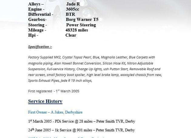 2005 05 Reg TVR Tuscan MK2 – 3600cc Speed Six