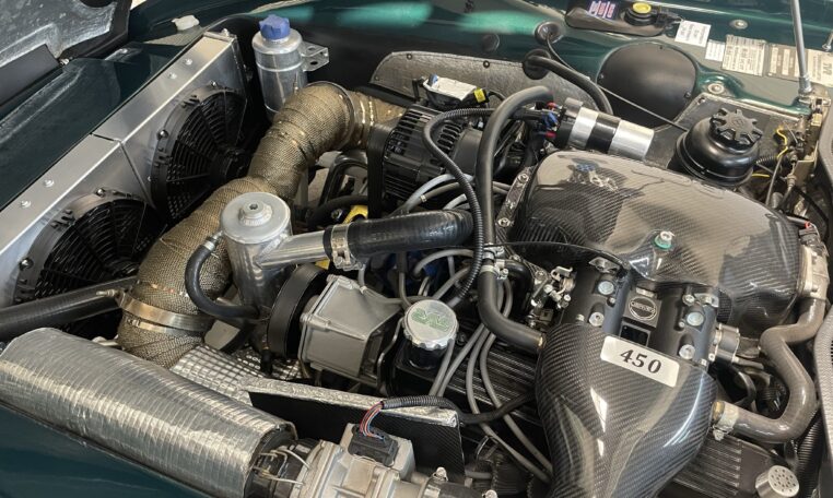 The cooling system was re freshed with a high flow aluminium radiator, new heater matrix, new swirl pot and expansion tank as well as water p[ump, thermostat, every coolant hose replaced with silicon and every rigid coolant pipe replaced with stainless. Every pipe clip is stainless steel.
