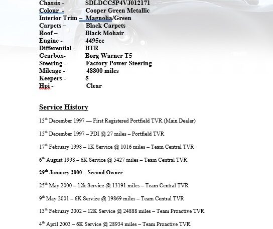 R Reg TVR Chimaera 4500cc – Cooper Green, PAS