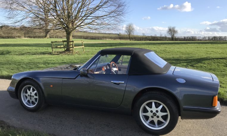 TVR S3c 2900cc, Storm Grey, Ivory/Prussian Hide, Dark Blue Carpets, Black Mohair Roof, extensive chassis restoration in 2008, TVR Ex Blackpool Trimmed interior and new roof in 2015, into stock this week, 116k on the clock but you would think it has 45k with the love, attention and hard cash it’s had spent on it – but on condition every time, great example and just getting it’s MOT and through our workshop next week £8995