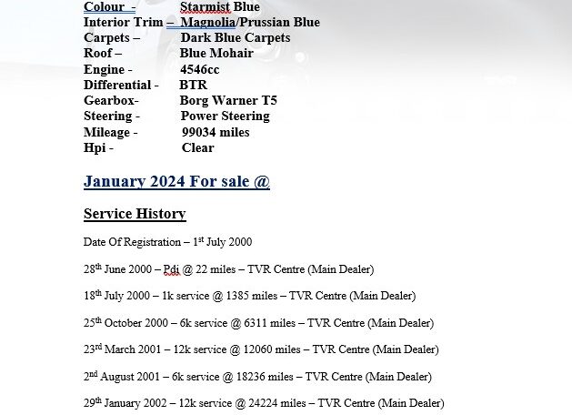 2000 Model Year TVR Chimaera 4500cc, MK2.5