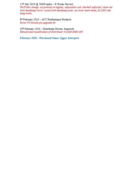 1998 Model, Halcyon Midas Pearl, Upgraded Yellow Factory Dials, Estoril Alloys, Alloy Cockpit Kit, Upgraded Rear Badge, Remote Boot Release, last lady owner since 2014, new camshaft and adjusters 66780 miles, outriggers replaced @ 68010 miles, new clutch at 70,000 miles, throttle pot upgrade ACT manifolds, ceramic HT leads, silicon hose kit, stainless coolant pipes, aluminum radiator