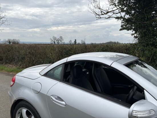 Iridium Silver Metallic, Black leather, Automatic, Heated seats, heated air scarf system, electric seats, alloy wheels, , electric factory roof, power steering, electric mirrors, electric windows, mudflaps, well loved car, just taken in as a part exchange for a Morgan sportscars, well loved and ready to go , includes SLK private plate, 12months MOT