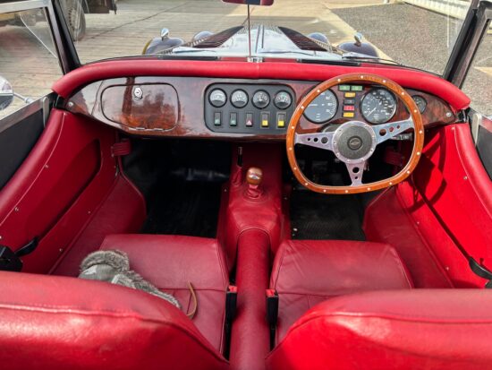 4/4 Ford CVH 1.6 Efi, 5 Speed Gearbox, Chrome Wire Wheels with 4 Winged Knock Offs, Wing Mirrors, Locking Door Handles, Twin Fog Lamps Front and rear, luggage Rack, Catalytic convertor, Perspex wind deflector, Square bottom wooden steering wheel, Alloy Camshaft Cover,