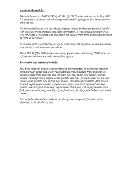 TVR Sagaris coming out of preparation shortly and a great treat for someone.
