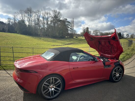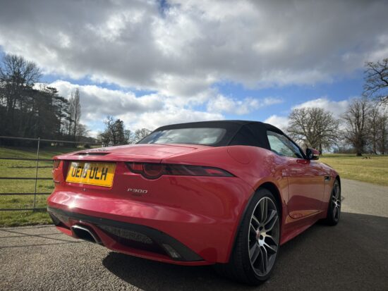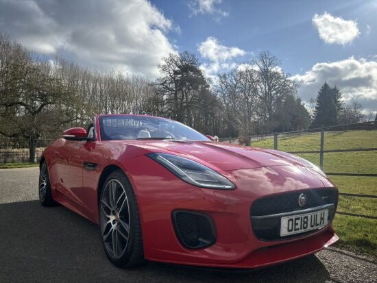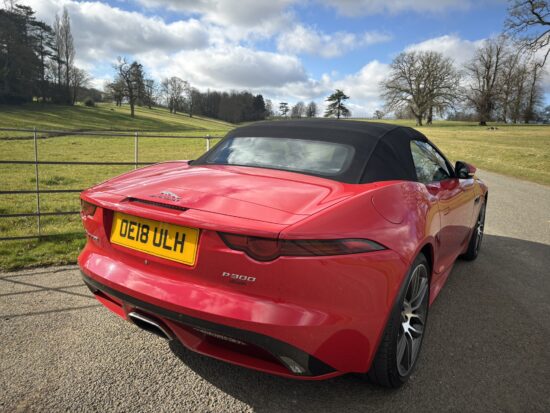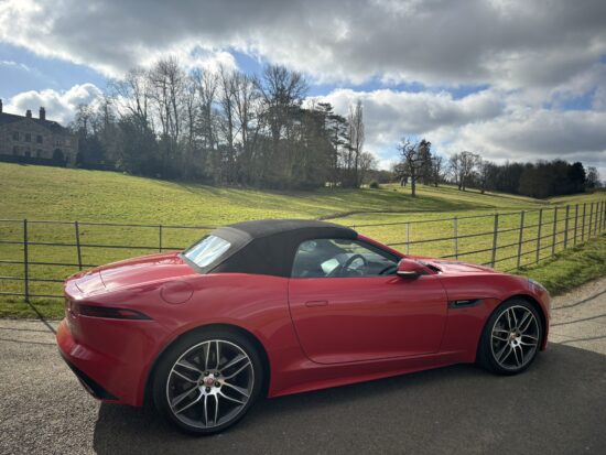 Our lovely Jaguar F Type for sale @ £26995 has a cheeky Union jack underneath its rear electric spoiler