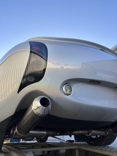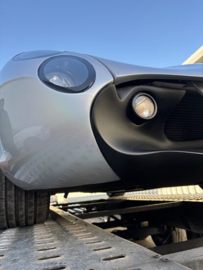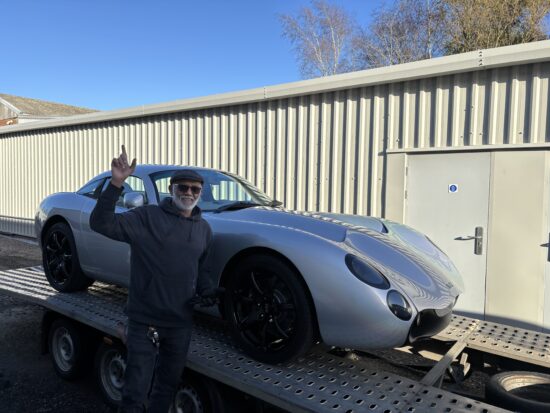 TVR Tuscan MK2 in Spectraflair Silver – off out today on its journey to the other side of the planet.