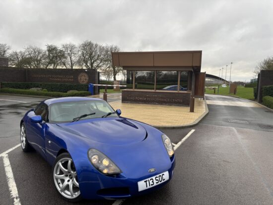 TVR T350 Coupe – Just finished in prep – After a full 12k service, lots of other time consuming updates as always, last thing today was on the computer to check its all behaving itself and then before it got dark a good thrash round our circuit followed by a trip down the A46 to Leicester City training centre (its the right colour too), we thought we might as well annoy them on a Friday afternoon.